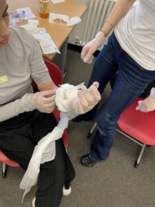 Am 19.03.2026 nahmen die 8. Klassen unserer Schule geschlossen an einem Erste-Hilfe-Kurs teil. Über den Verlauf von acht Schulstunden hinweg erlernten die Schülerinnen und Schüler wichtige Grundlagen, um in Notfallsituationen richtig reagieren zu können. Dazu gehörten unter anderem das Absetzen eines Notrufs, Maßnahmen der Wiederbelebung sowie die Versorgung von Verletzten.